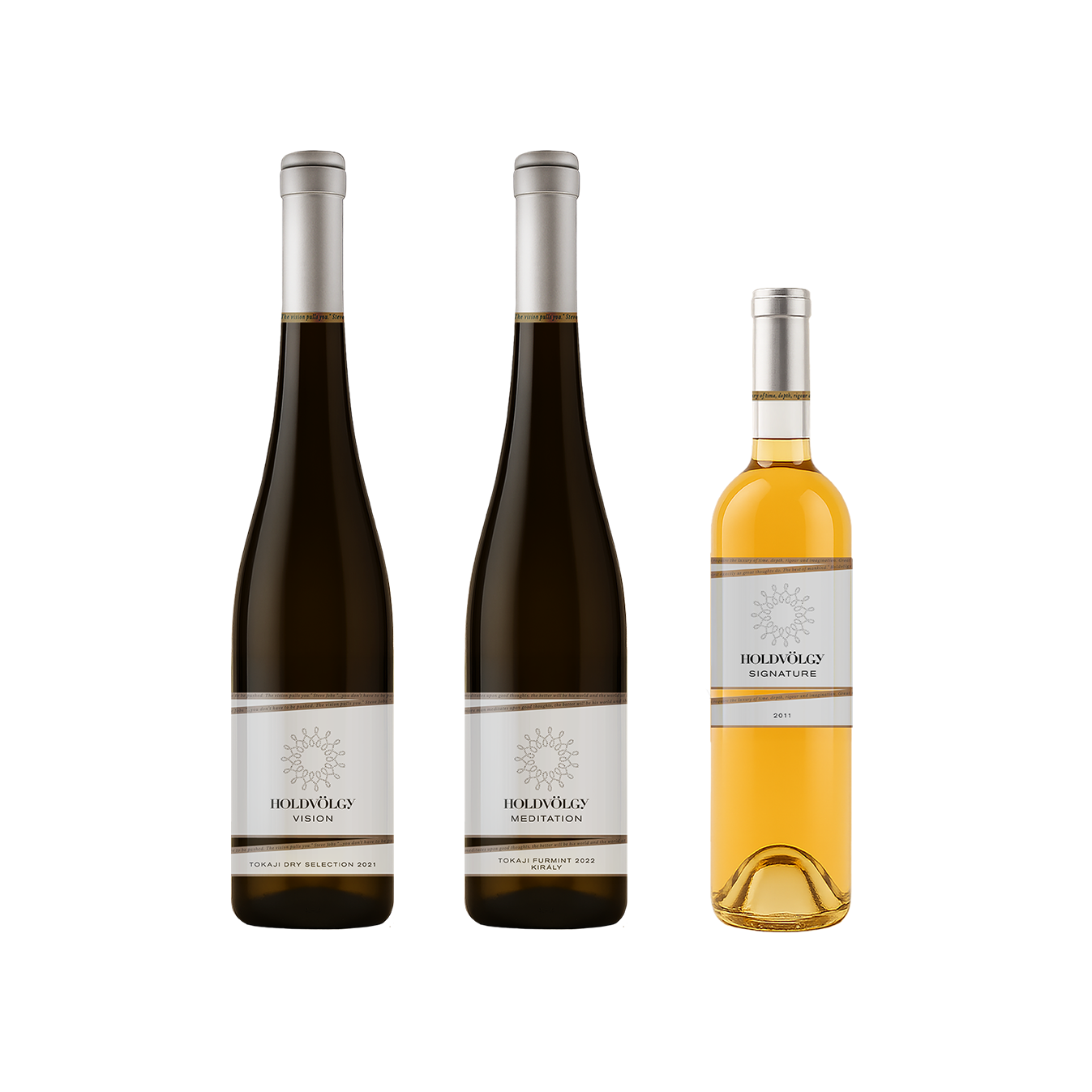Válogatásunkba két legnépszerűbb száraz tételünk mellé (Vision és Meditation) egy díjnyertes és egyben ikonikus édes bor is került. A Signature 2011 a birtok folyékony aláírása, mely tökéletesen tükrözi a Holdvölgy filozófiáját és Tokaj borkészítési hagyományait, hiszen aszú, szamorodni és eszencia házasításával készül.